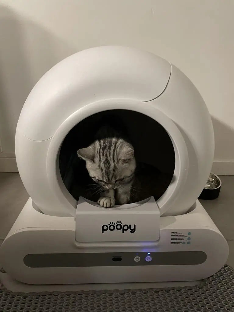 I am very satisfied with the Poopy Nano 2. My cat was curious about it right away, especially when the tray started spinning. Fortunately, it didn't scare him and he got used to it quickly. What I personally really like is that through the app you get notifications: when your cat has used the tray and even the weight of your cat is tracked. That's handy, even when you're not at home.