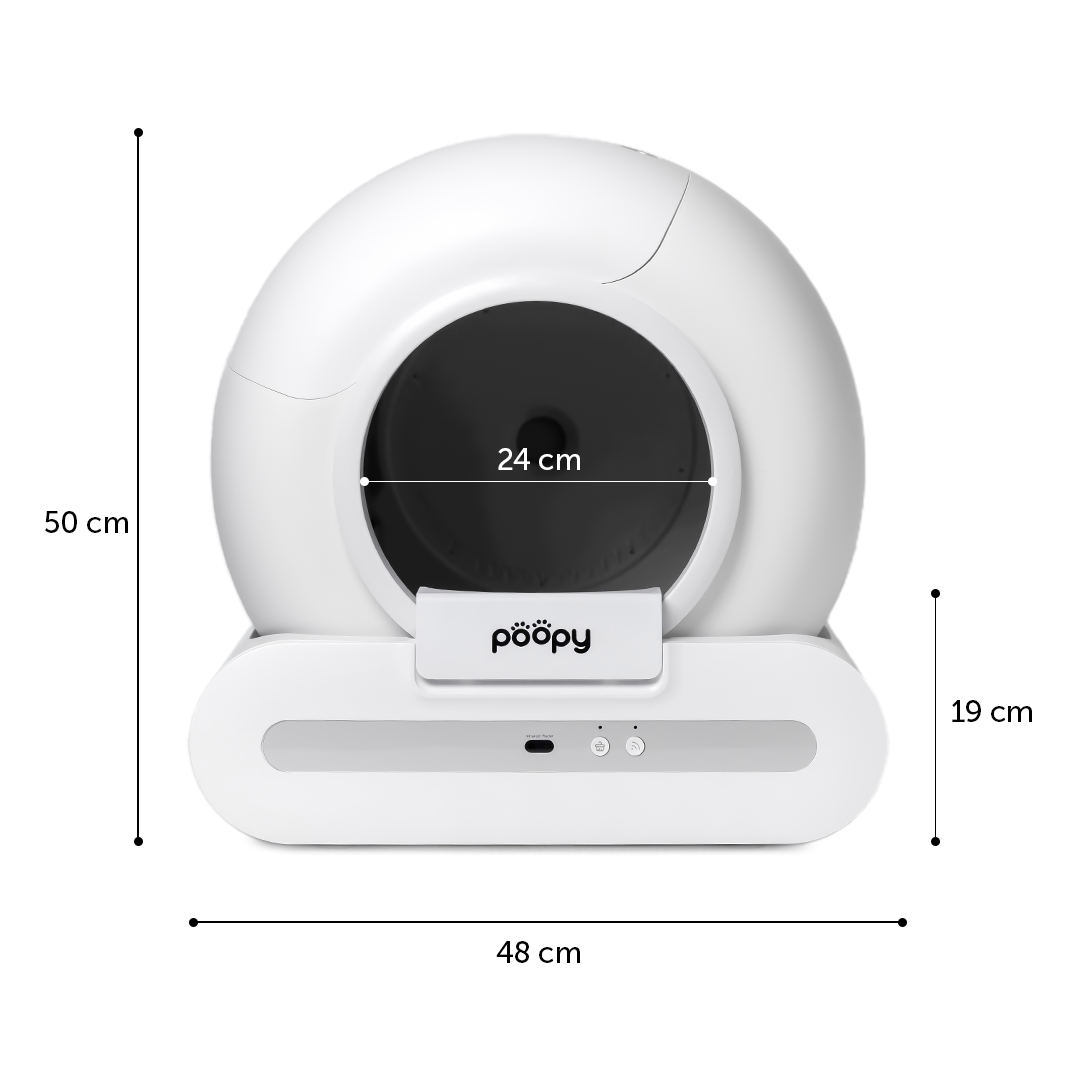 Every cat is different. Most cats accept the Poopy quickly, but some need some time to get used to the automatic cleaning mechanism. Therefore, introduce the Poopy gently and gradually.